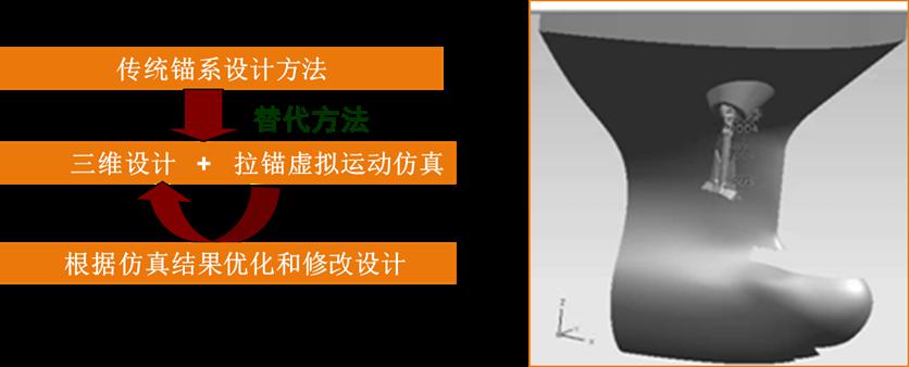 經(jīng)過與國內(nèi)行業(yè)權(quán)威設(shè)計(jì)院的合作過,并將該技術(shù)應(yīng)用于船舶建造中,對錨鏈筒、錨臺、錨唇、錨穴、錨、錨鏈、錨機(jī)、止鏈器、導(dǎo)鏈滾輪、船體等進(jìn)行三維設(shè)計(jì)和自動建模,實(shí)現(xiàn)了三維錨系計(jì),保證了錨系設(shè)計(jì)中空間位置定位的準(zhǔn)確性,并通過三維軟件導(dǎo)出二維CAD圖紙,扭轉(zhuǎn)了一直以來二維圖紙與船廠錨系施工脫節(jié)的局面,極大提高了錨系設(shè)計(jì)的效率。除此之外,利用軟件的后期的仿真功能,模擬并預(yù)報收錨過程的動態(tài)效果并給出調(diào)整方案。